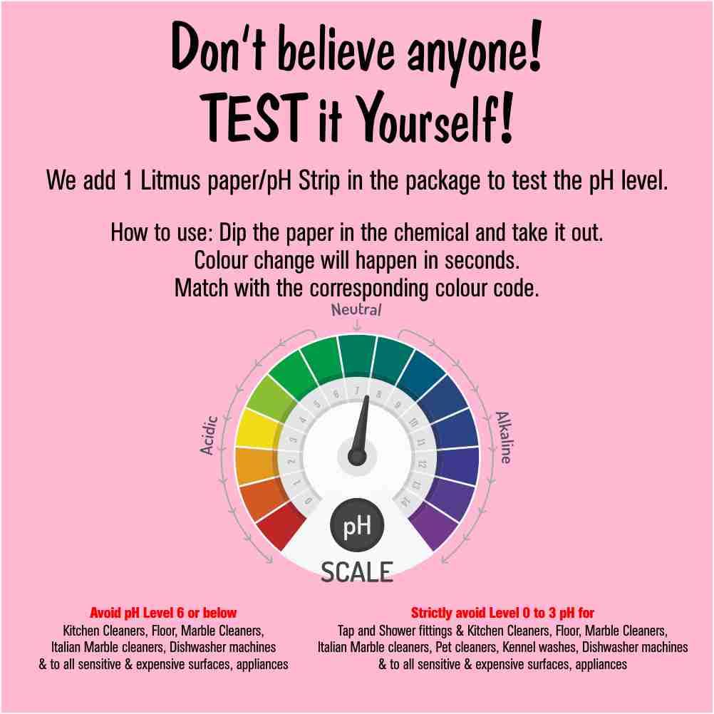 - Neutral pH scale, Gentle on skin and Safe on Hands and all household Appliances. After cleaning rinse the area.