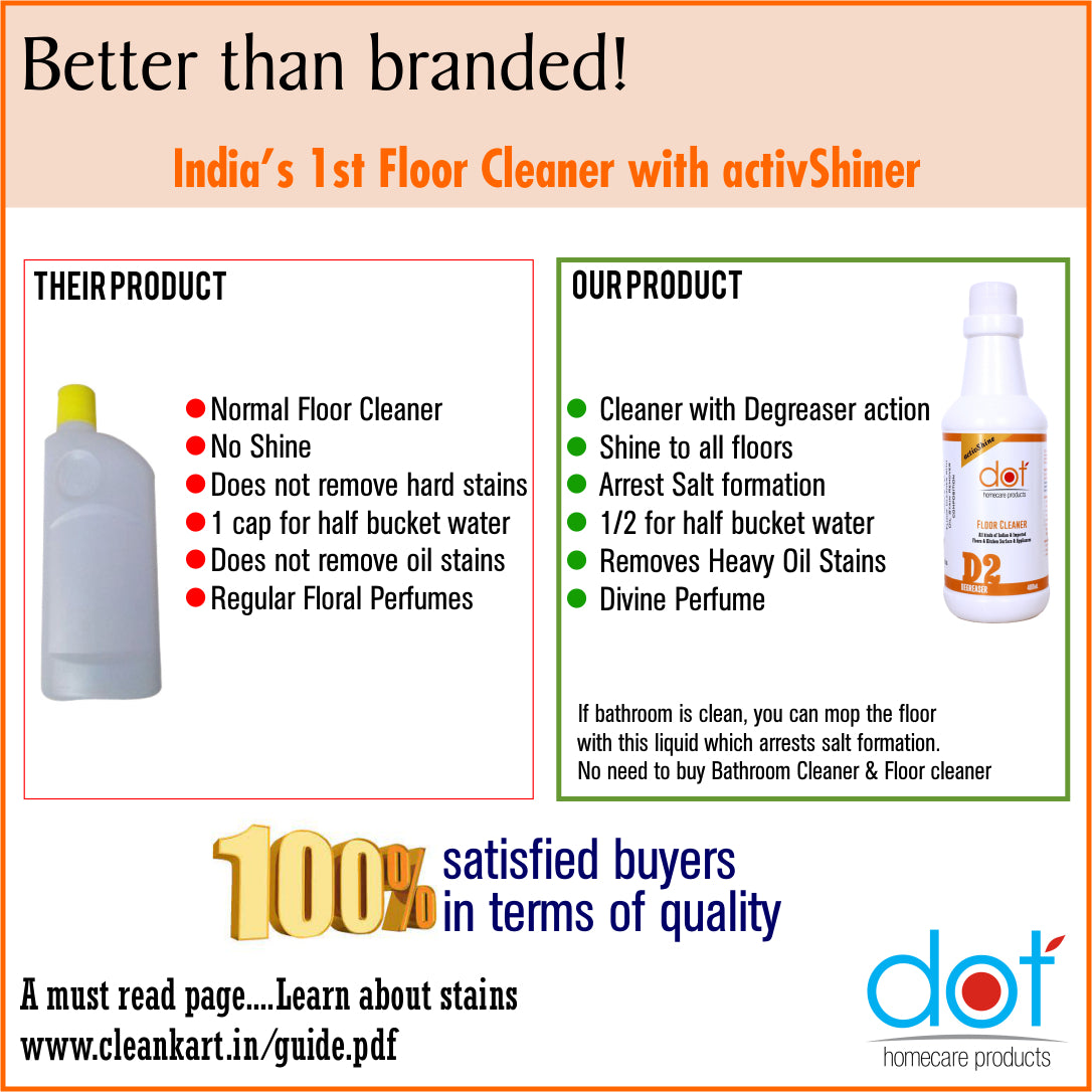 - 1st time product in India. 1st Floor Cleaner with Oil Stain Remover formula and with shiner composition